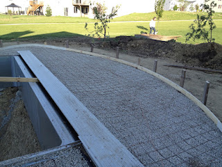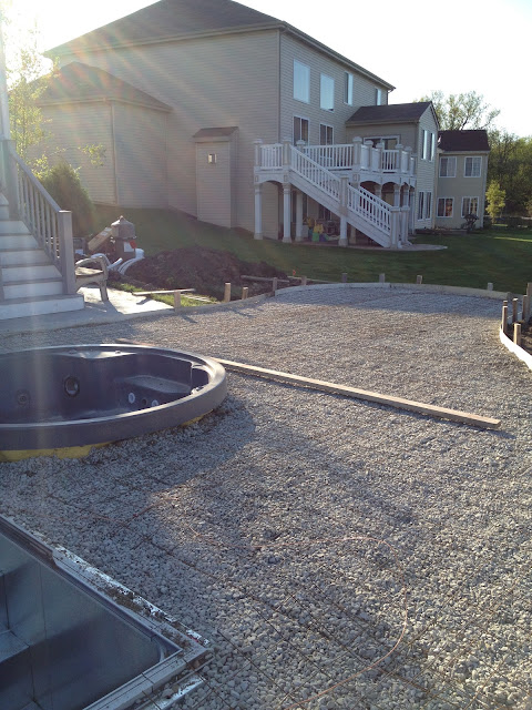 The yard is now prepped for concrete to be poured. This expanse of patio beyond the hot-tub looks a little excessive, BUT there will be a fire pit in this area.